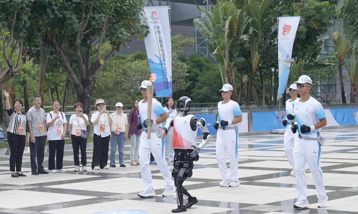 Humanoid 'Kuafu' debuts as special torchbearer at 15th National Games relay in Shenzhen