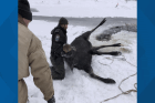 WDFW officer, Pend Oreille firefighters, WSP Trooper save moose who had fallen through the ice