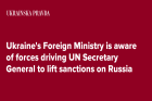 Ukraine's Foreign Ministry is aware of forces driving UN Secretary General to lift sanctions on Russia